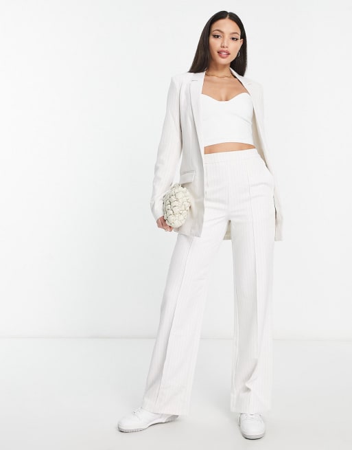Pieces Tall - Ensemble blazer oversize et pantalon à fines rayures - Blanc