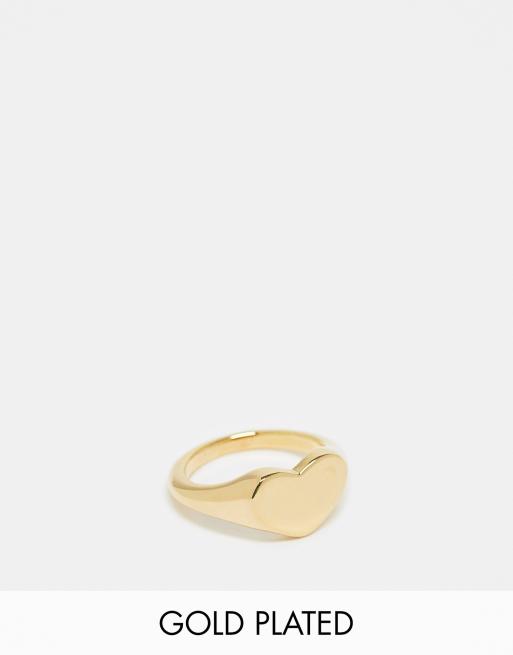 Exclusivité - Pieces - Chevalière cœur en plaqué or 18 carats - Doré