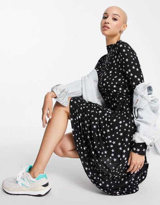 Pieces - Asta - Robe mi-longue à manches longues et imprimé étoiles sur l'ensemble - Noir