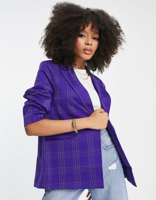 Pieces - Blazer d'ensemble oversize à carreaux - Violet