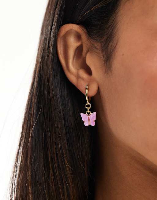 Pieces - Boucles d'oreilles à petit pendant papillon - Lilas