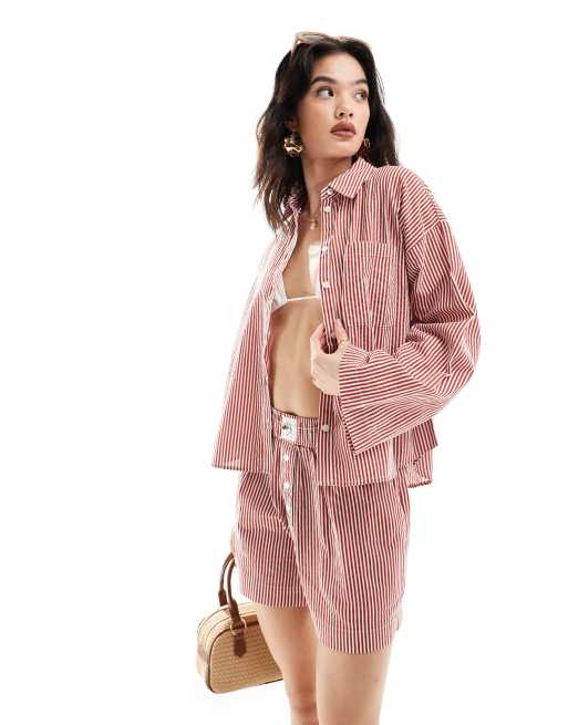 Pieces - Chemise d'ensemble oversize à rayures - Rouge