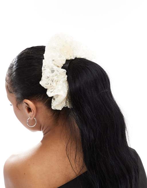 Pieces - Chouchou oversize en tulle à fleurs brodées - Blanc