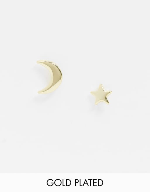 Pieces - Clous d'oreilles lune et étoile en plaqué or 18 carats - Or