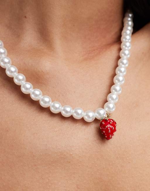 Pieces - Collier de perles fantaisie avec pendentif fraise