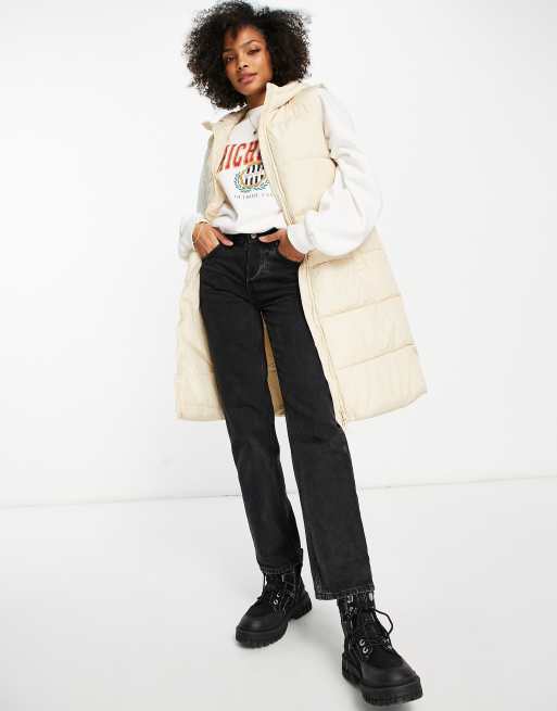 Pieces - Doudoune longue sans manches - Crème
