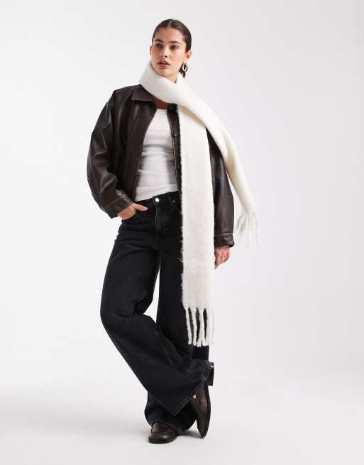 Pieces - Écharpe longue et ultra douce à franges - Blanc