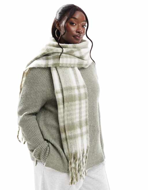 Pieces - Écharpe ultra douce à franges - Vert à carreaux
