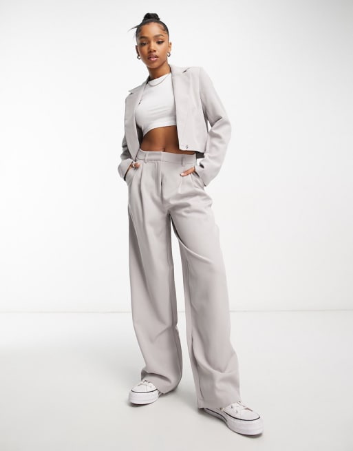 Pieces - Ensemble avec blazer court et pantalon ajusté - Gris