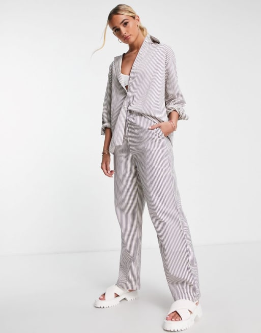 Pieces - Ensemble avec chemise et pantalon à rayures - Lilas