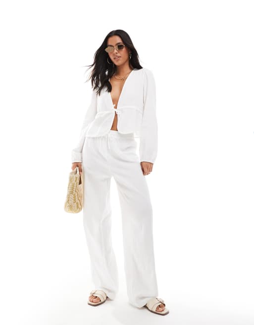 Pieces - Ensemble avec top froissé noué devant et pantalon - Blanc