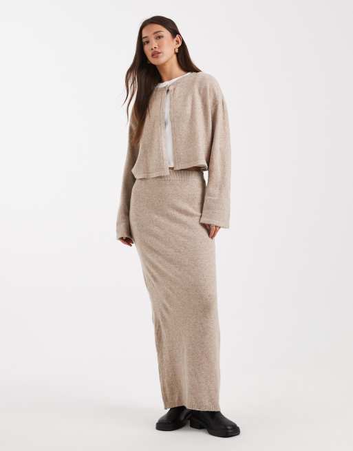 Pieces - Ensemble gilet en maille et jupe longue - Taupe chiné