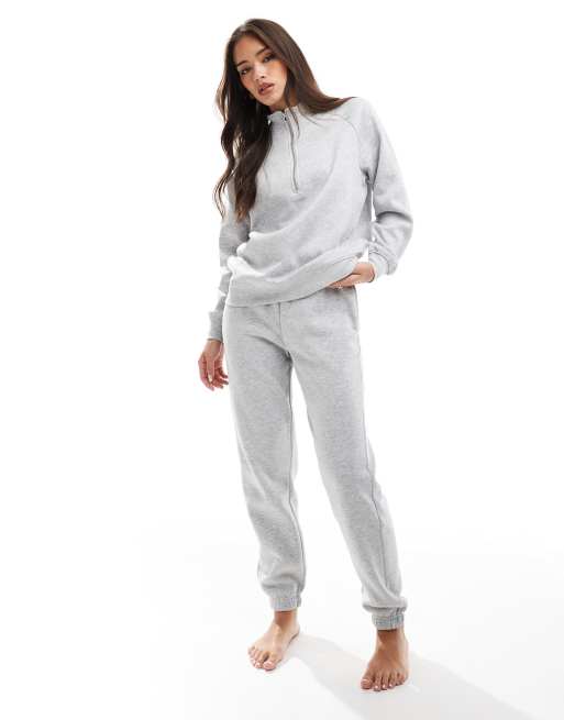 Pieces - Ensemble sweat à col zippé et pantalon de jogging à taille nouée - Gris clair chiné