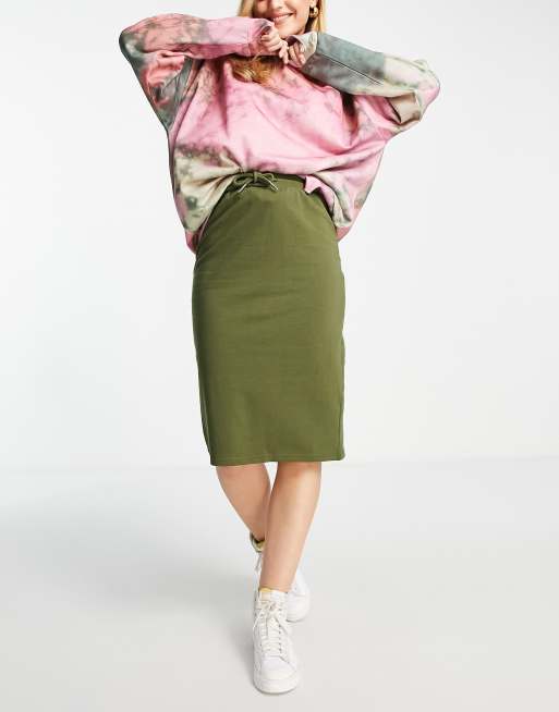 Pieces - Falon - Jupe mi-longue en jersey - Vert mousse