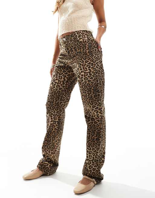 Pieces - Jean droit à imprimé léopard