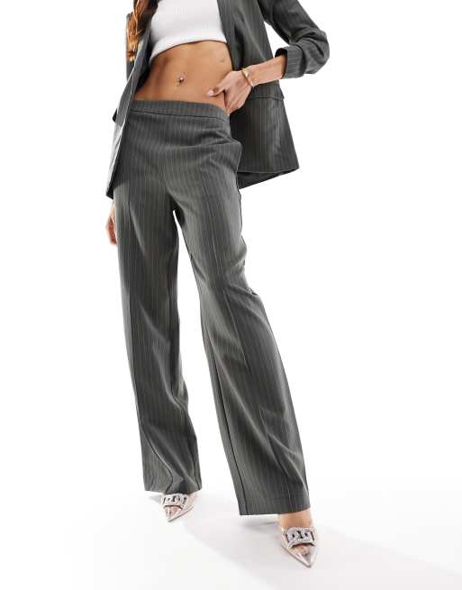 Pieces - Pantalon ample d'ensemble ajusté à fines rayures - Anthracite