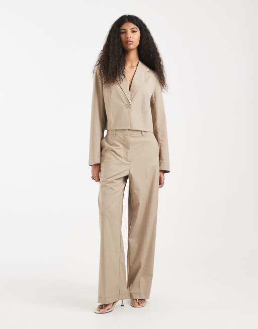 Pieces - Pantalon d'ensemble ample et ajusté à taille haute - Beige