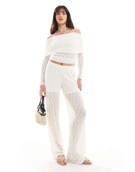 Pieces - Pantalon d'ensemble en dentelle - Crème