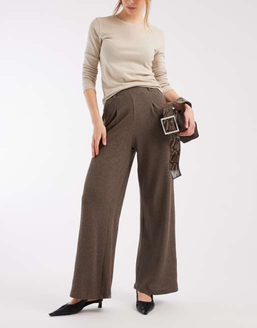 Pieces - Pantalon habillé ample effet poivre et sel - Marron clair chiné