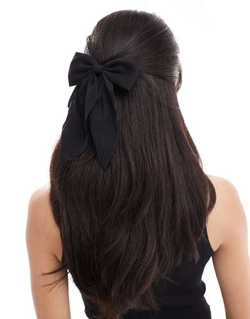 Pieces - Pince à cheveux plissée avec nœud - Noir