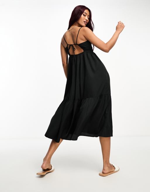 Pieces - Robe mi-longue à volants nouée dans le dos - Noir