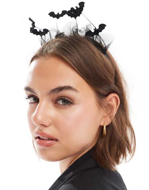 Pieces - Serre-tête d'Halloween en tulle à détails chauve-souris - Noir
