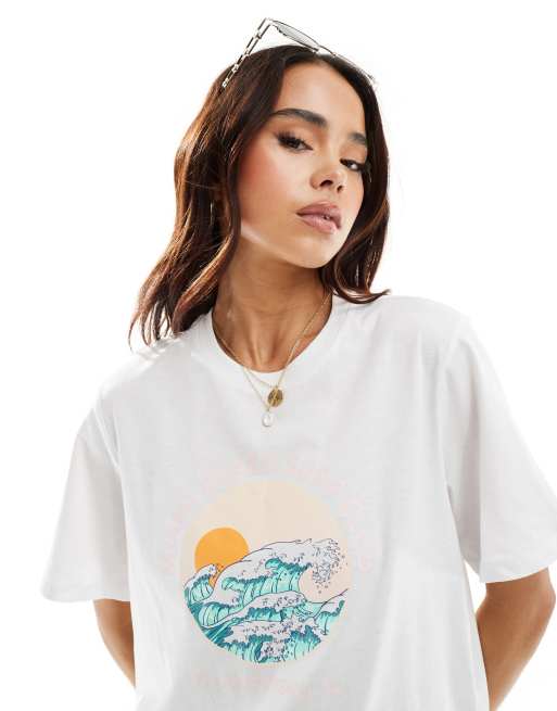 Pieces - T-shirt avec imprimé « Miami Beach Surf Club » - Blanc