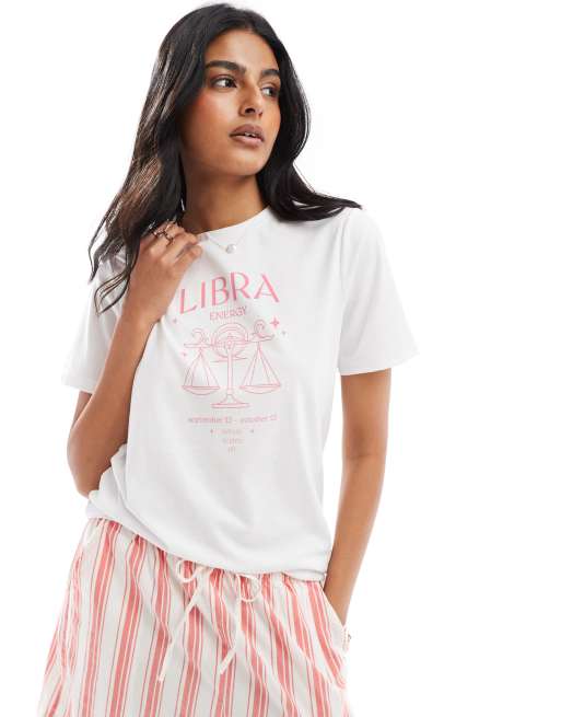 Pieces - T-shirt avec imprimé signe du zodiaque Libra - Blanc