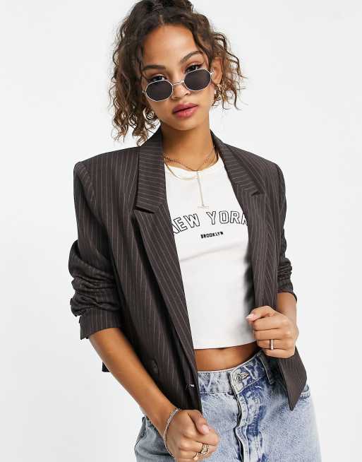 Pimkie - Blazer d'ensemble à fines rayures contrastantes - Marron