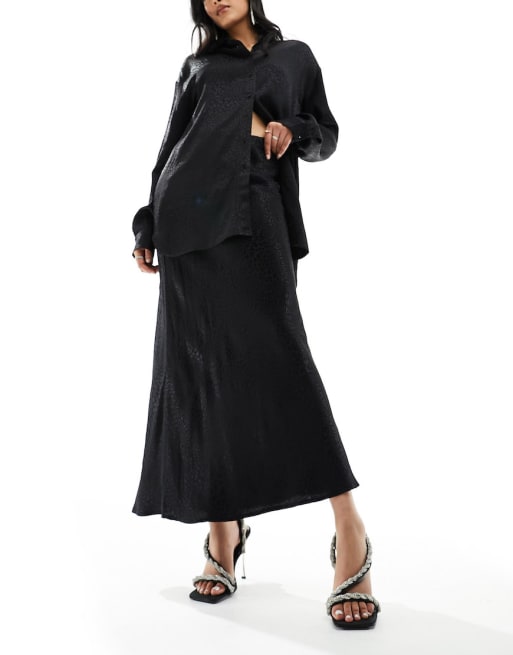 Pimkie - Ensemble en satin avec chemise et jupe longue - Animal noir