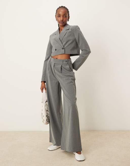 Pimkie - Ensemble pantalon large et ajusté avec blazer ajusté court à fines rayures - Gris