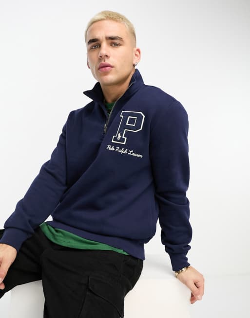 Collaboration exclusive - Polo Ralph Lauren x ASOS - Sweat à demi-fermeture éclair avec logo à l'avant et au dos - Bleu marine