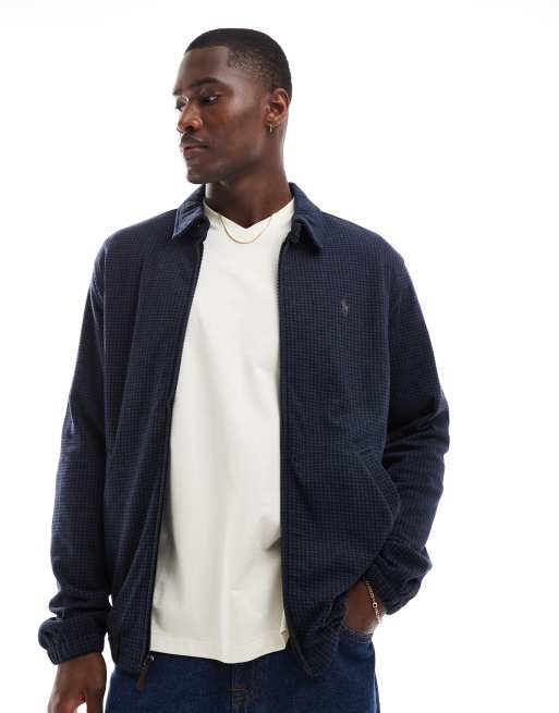 Polo Ralph Lauren - Blouson Harrington en maille double à chevrons et logo emblématique - Bleu marine chiné