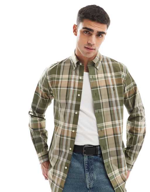Polo Ralph Lauren - Chemise à carreaux en popeline stretch avec logo emblématique - Vert foncé