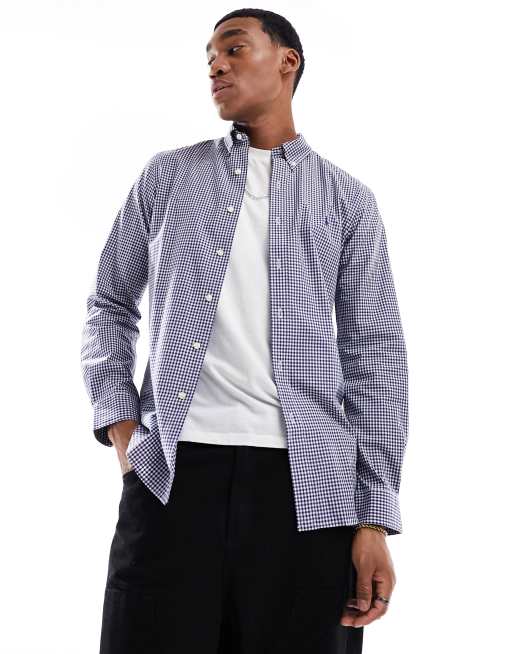 Polo Ralph Lauren - Chemise ajustée en popeline stretch à carreaux avec logo emblématique - Bleu marine et blanc