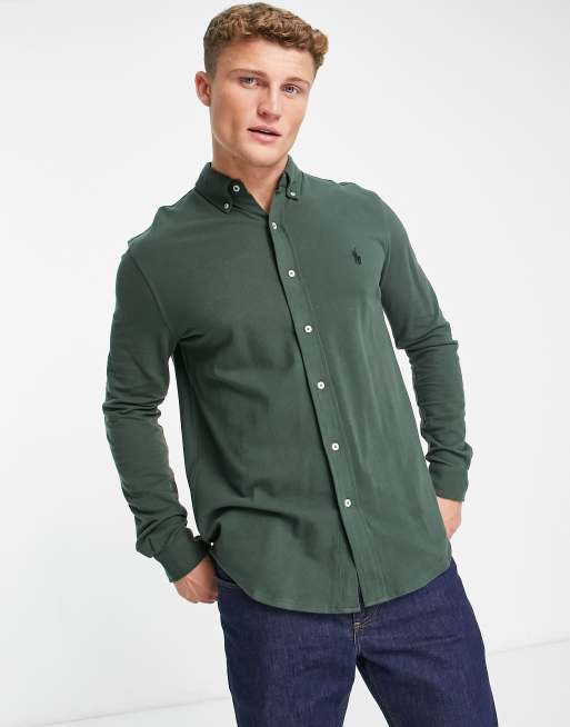 Polo Ralph Lauren - Chemise boutonnée en piqué avec logo emblématique - Vert foncé