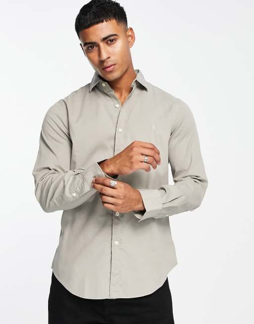 Polo Ralph Lauren - Chemise coupe slim avec logo joueur de polo - Gris foncé