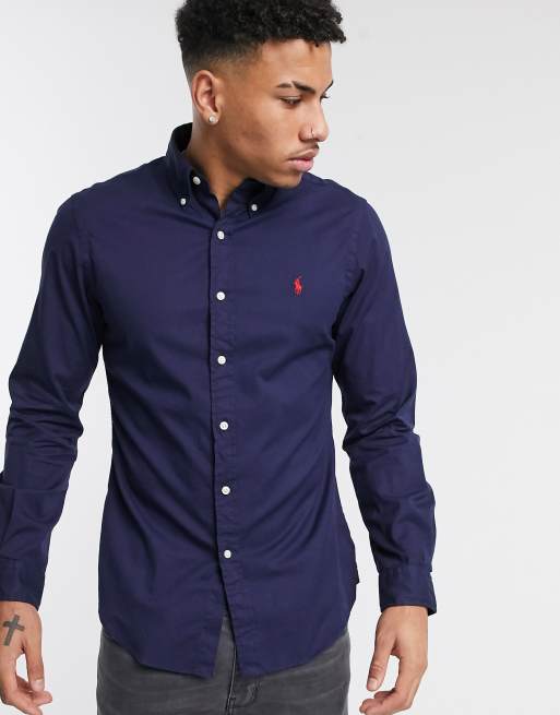 Polo Ralph Lauren - Chemise coupe slim teinte en pièce avec logo - Bleu marine