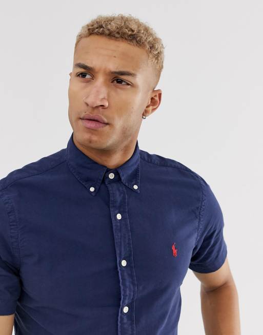 Polo Ralph Lauren - Chemise teintée coupe ajustée à manches courtes et col boutonné - Bleu marine