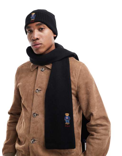 Polo Ralph Lauren - Coffret cadeau écharpe et bonnet en laine avec logo ourson - Noir