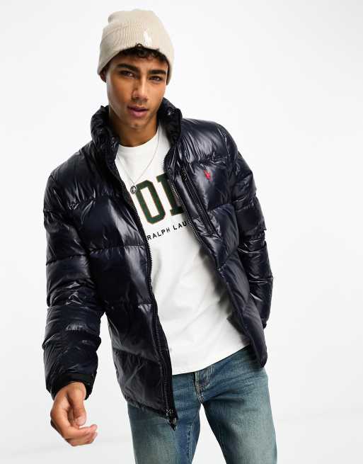 Polo Ralph Lauren - Doudoune brillante avec capuche amovible - Bleu marine