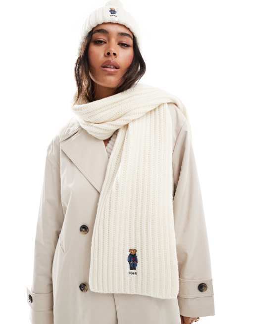 Polo Ralph Lauren - Écharpe en maille à logo ours - Crème