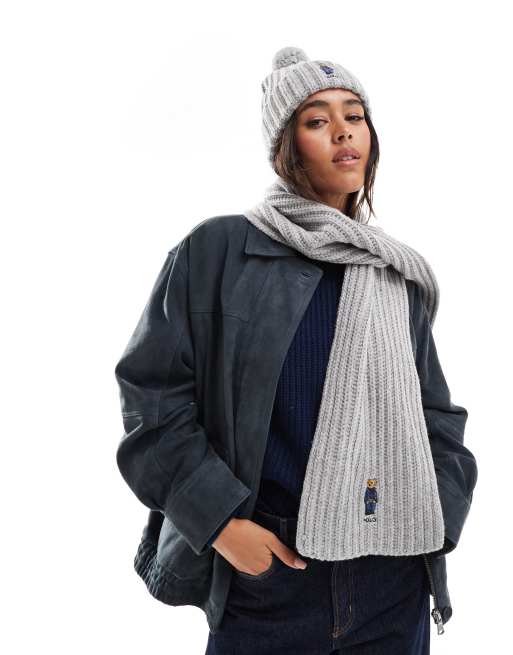 Polo Ralph Lauren - Écharpe en maille à logo ours - Gris
