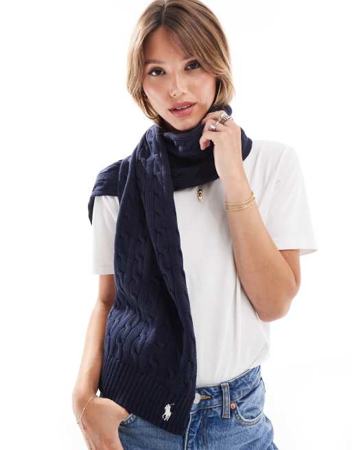 Polo Ralph Lauren - Écharpe en maille torsadée avec logo joueur de polo - Bleu marine