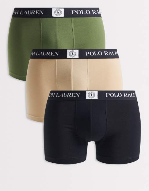 Polo Ralph Lauren - Lot de 3 boxers en coton - Noir, kaki et vert olive
