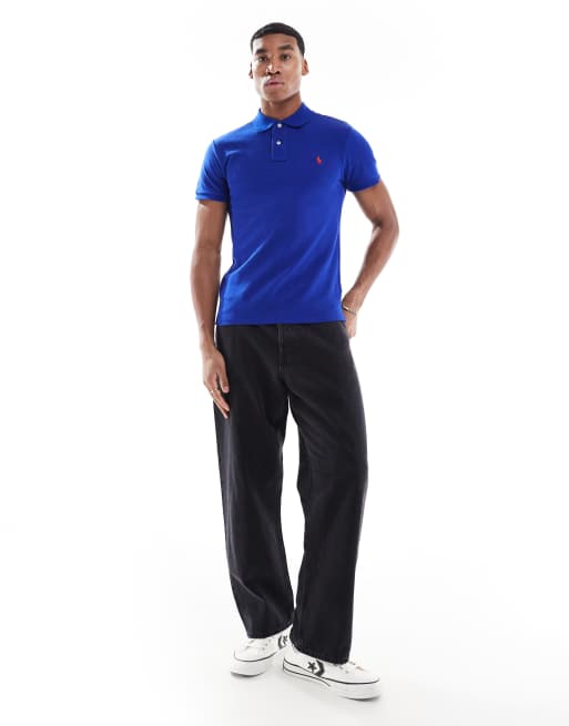 Polo Ralph Lauren - Polo ajusté en piqué avec logo emblématique - Bleu moyen
