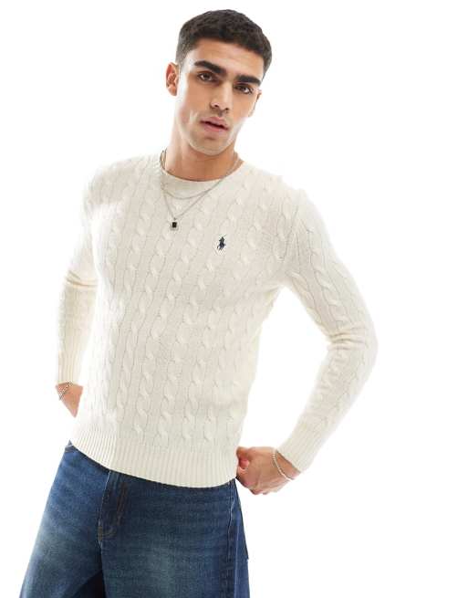 Polo Ralph Lauren - Pull en maille torsadée à logo emblématique - Crème