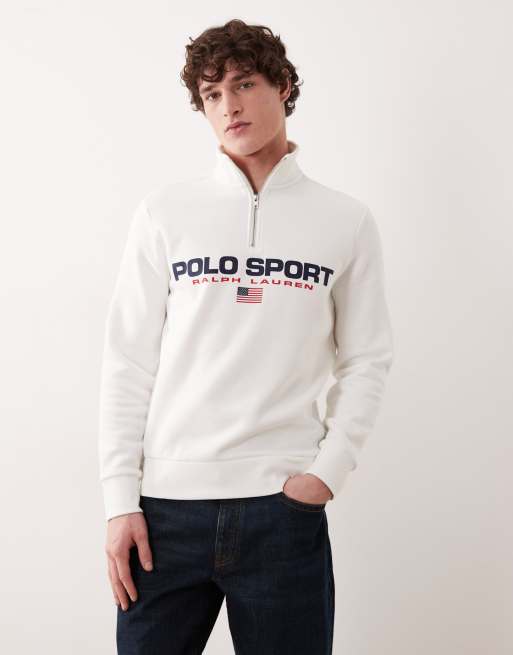 Polo Ralph Lauren - Sport - Sweat à col zippé et logo drapeau - Blanc
