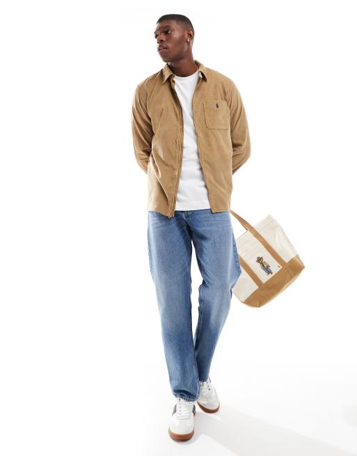 Polo Ralph Lauren - Surchemise classique et oversize en velours côtelé avec fermeture éclair et logo emblématique - Fauve