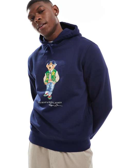 Polo Ralph Lauren - Sweat à capuche à imprimé ours style football américain - Bleu marine